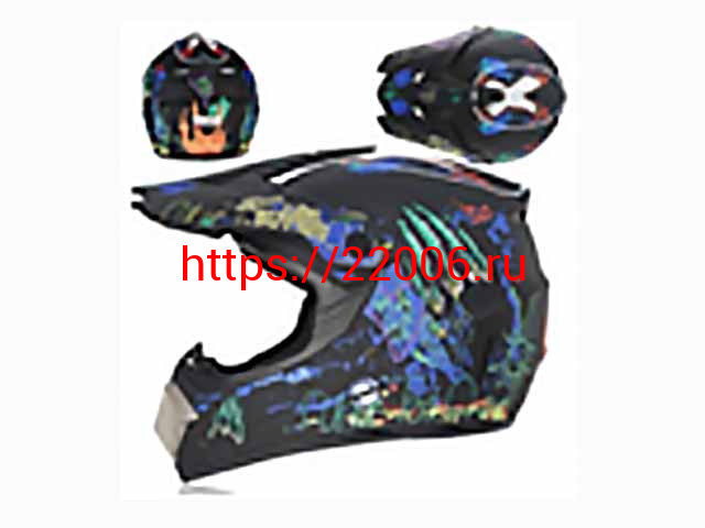 - Мотошлем VIRTUE MD-905 Кросс черный матовый с синим граффити (S) в Челябинске недорого