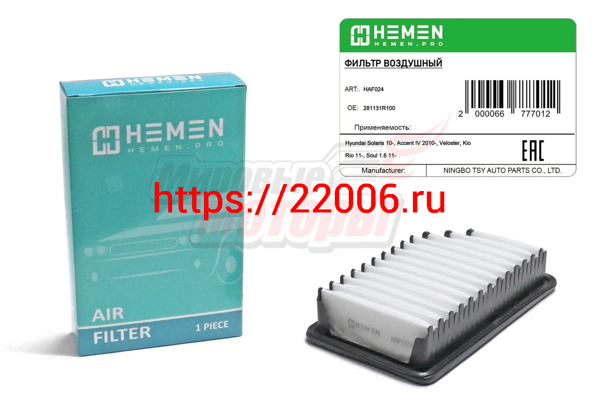 - Фильтр воздушный Hyundai Solaris 10-, Accent IV 2010-, Veloster, Kia Rio 11-, Soul 1.6 11- (HAF024) в Челябинске недорого