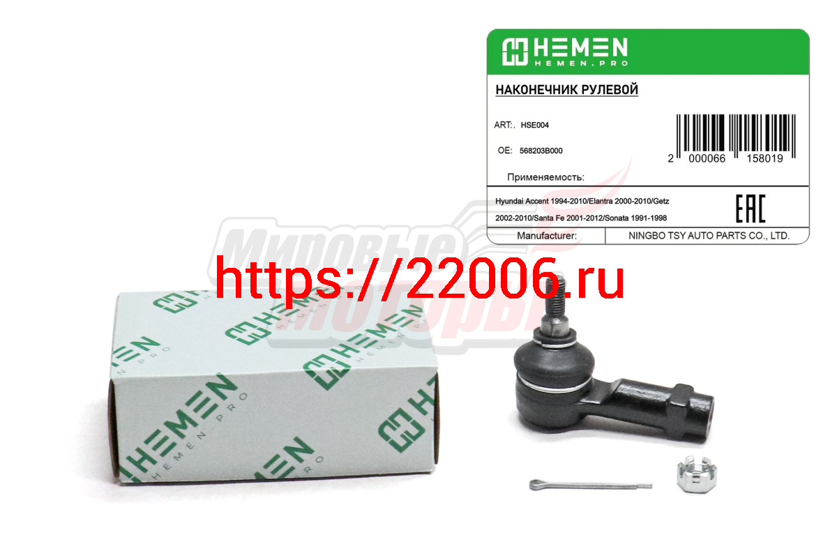 - Наконечник рулевой Hyundai Accent 94-, Santa Fe 01-, Getz 02-, Kia Spectra 04- (HSE004) в Челябинске недорого