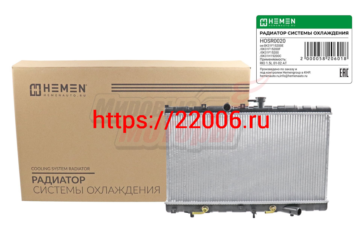 - Радиатор охлаждения двигателя KIA RIO 1.3/1.5 00-05 AT(HOSR020) в Челябинске недорого