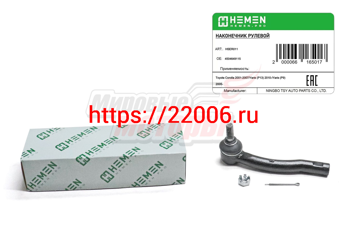 - Наконечник рулевой правый Toyota Corolla 02-, Yaris 05- (HSER011) в Челябинске недорого
