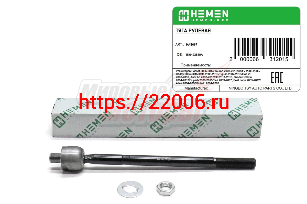 - Тяга рулевая VW Passat 05-,Golf V 03-,Golf VI 08-,Touran 03-, Audi A3 03-, Skoda Octavia 04- (HAS067) в Челябинске недорого