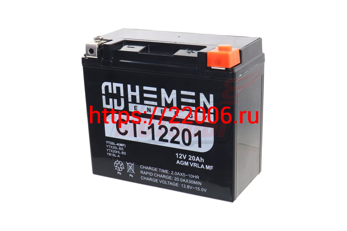 - Аккумулятор 12В20Ач HEMEN ENERGY CT12201 (YTX20L-BS) (кислотн, герметичный) (обр. пол) (175*86*155мм в Челябинске недорого