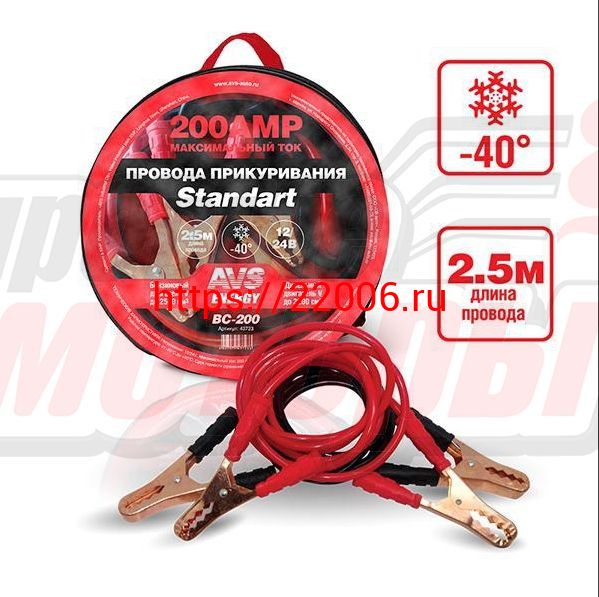 - Провода прикуривателя "AVS" Standart морозостойкие 200А/2,5м (ВС-200)(в сумке) в Челябинске недорого