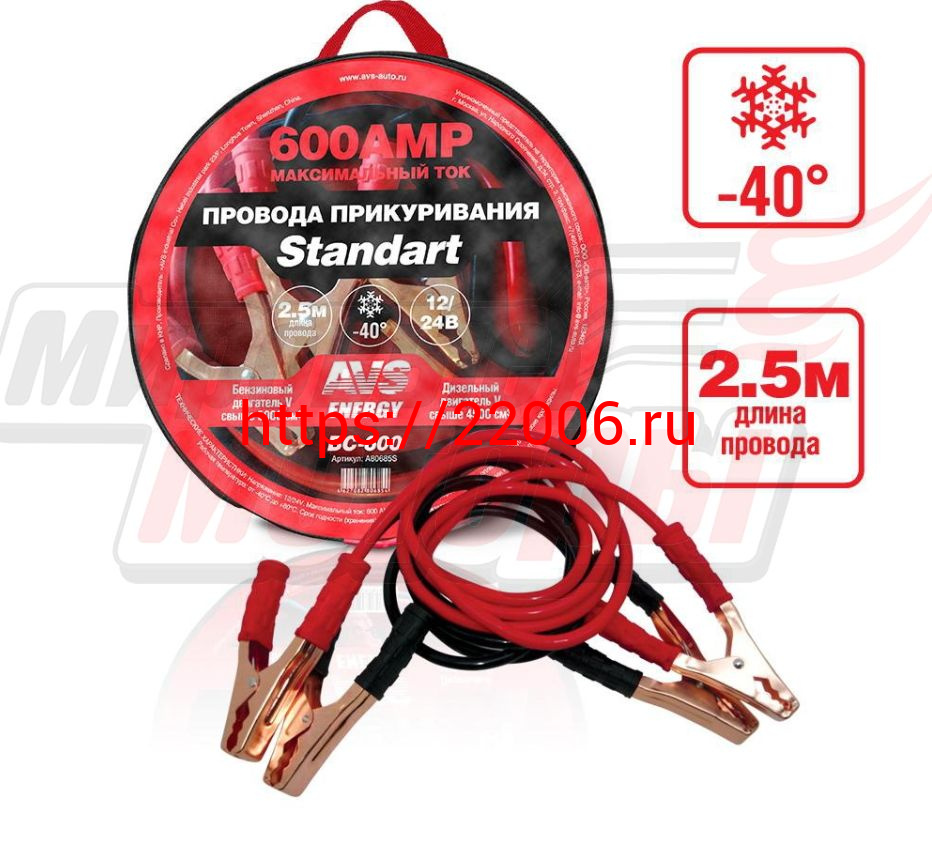 - Провода прикуривателя "AVS" Standart морозостойкие 600А/2,5м (ВС-600)(в сумке) в Челябинске недорого