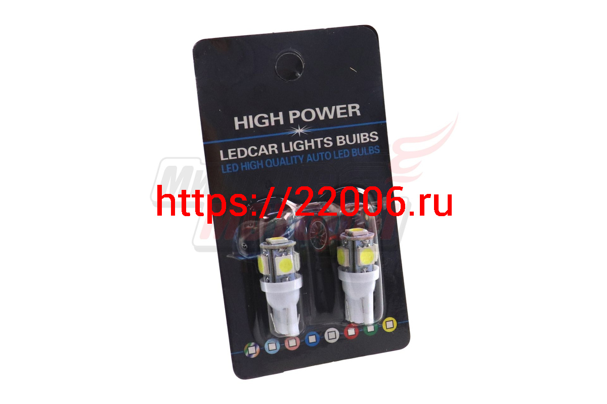 - Лампа 12 В T10 (W2.1x9.5d), 5 светодиодов, 5050SMD,без цоколя, белая (ПАРА) в Челябинске недорого