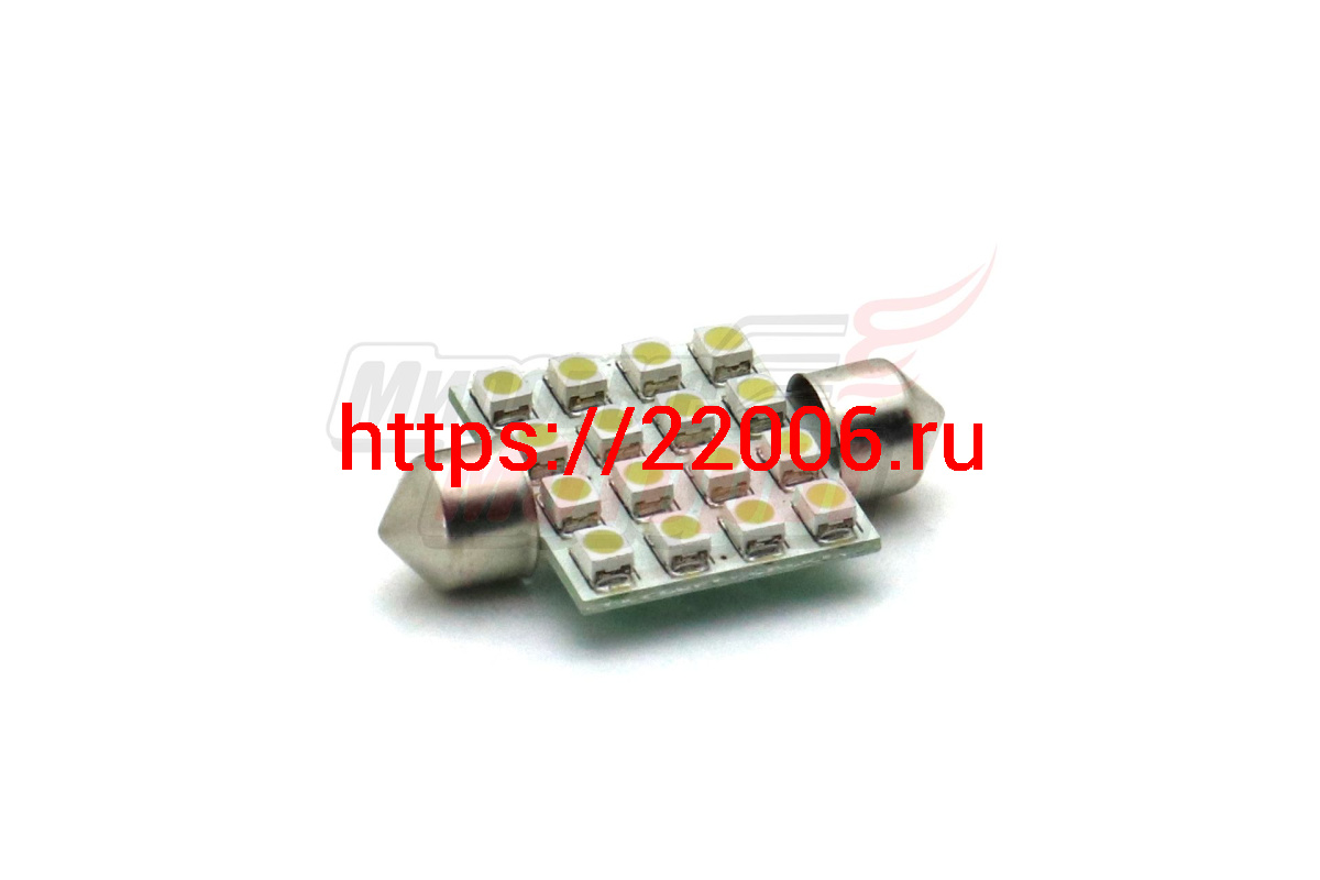 - Лампа 12 В T11х36, 16 светодиодов 3528SMD (4*4 шт), двухцокольная, подсветки, белая в Челябинске недорого