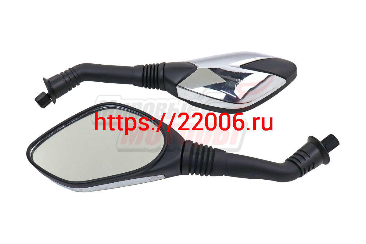 - Зеркала (146) пласт. пятиугольные (хром с черными вставками), d8, скутер в Челябинске недорого