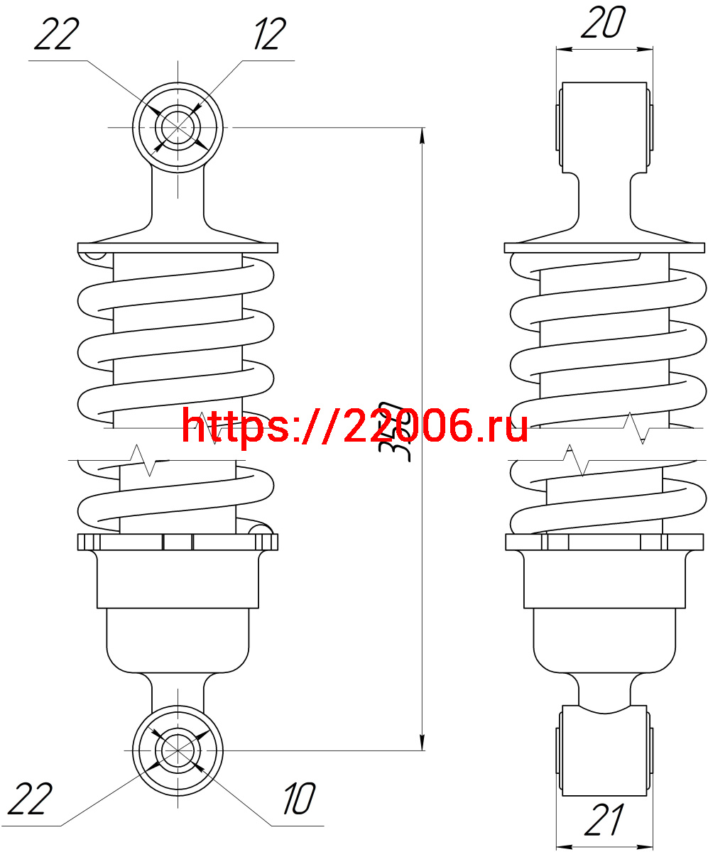 - Амортизатор Alpha зад. хром (L-350,D1-22,d1-12, Н1-20, D2-22,d2-10, Н2-21) ДОРОГОЙ (длинный стакан) в Челябинске недорого