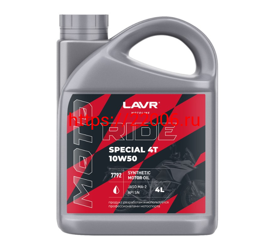 - Масло LAVR MOTO RIDE SPECIAL для 4т двиг.,синтетика, SAE 10W50, API SN JASO MA/MA2, 4литра (Ln7792) в Челябинске недорого