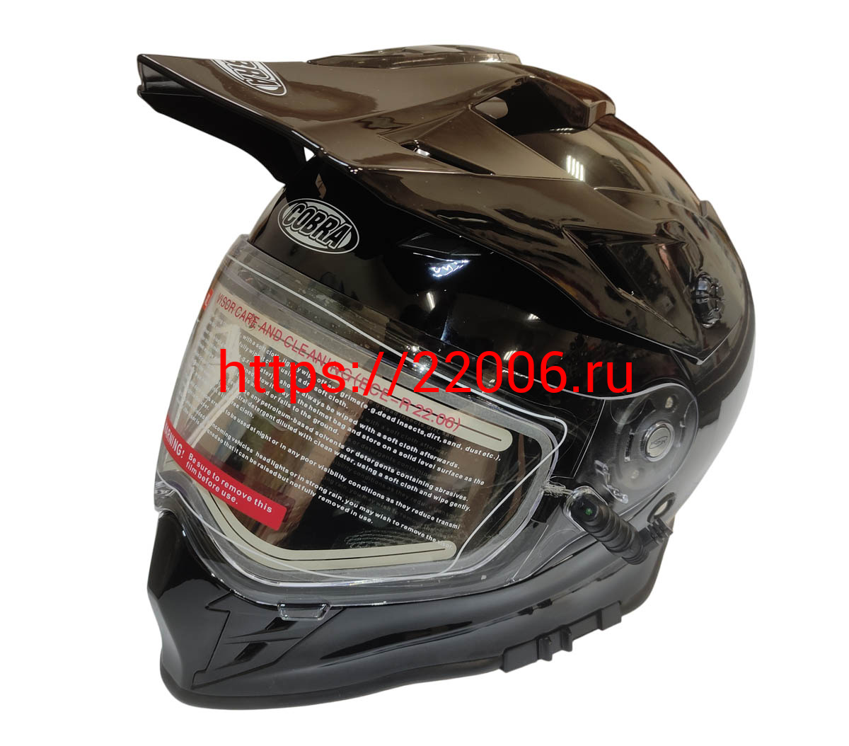 - Шлем кроссовый со стеклом (туринг) СНЕГОХОДНЫЙ COBRA EC H331, черный, с ПОДОГРЕВОМ ВИЗОРА, размер S в Челябинске недорого