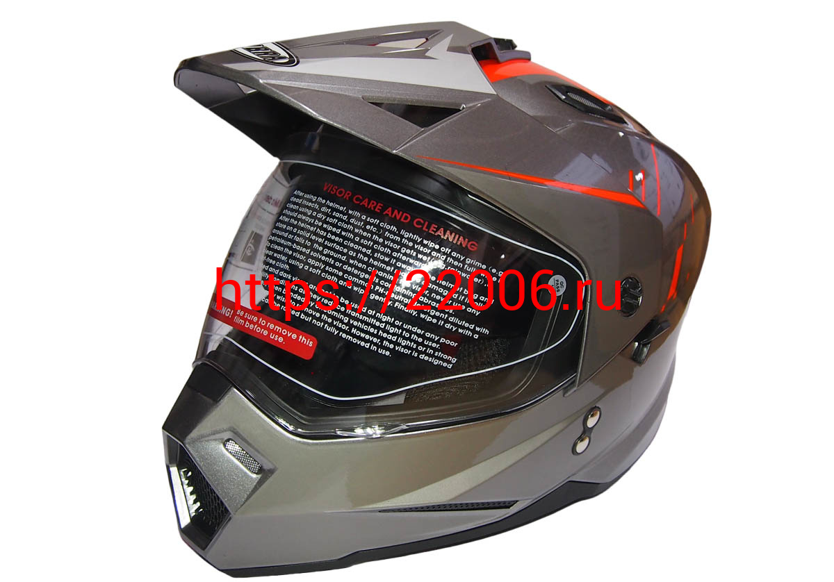 - Шлем туринг (кросс со стеклом и очками) COBRA JK802, серо-оранжевый, размеры S в Челябинске недорого