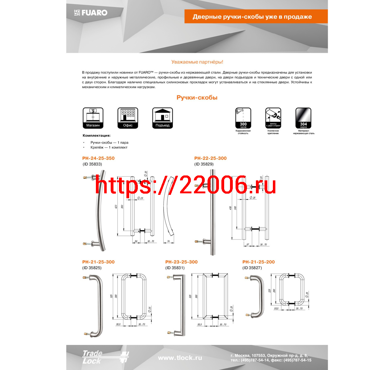 - Ручка-скоба Fuaro (Фуаро) PULL.PH25/200.21 INOX 304 (PH-21-25/200-INOX) в Челябинске недорого