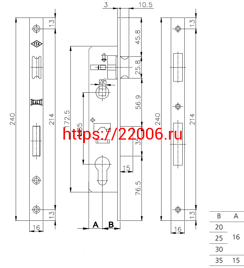 - Корпус Kale kilit (Кале килит) узкопрофильного замка с защёлкой 153/P (25 mm) w/b (хром) в Челябинске недорого