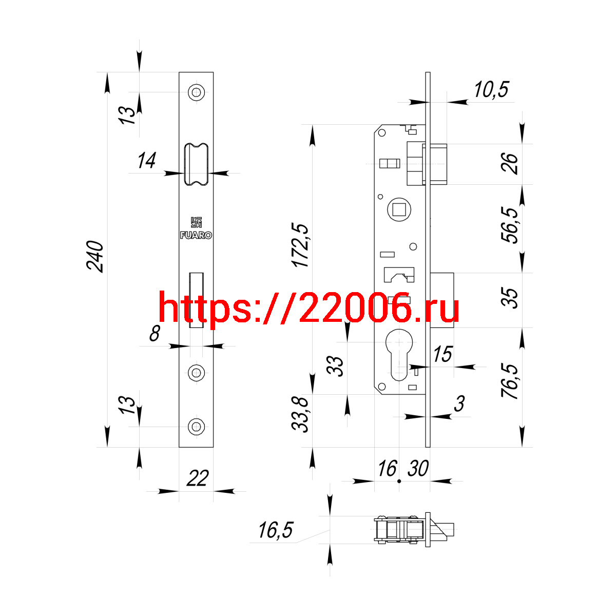 - Корпус Fuaro (Фуаро) узкопрофильного замка с защелкой PROF153-30/85 (153-30/85) CP хром в Челябинске недорого