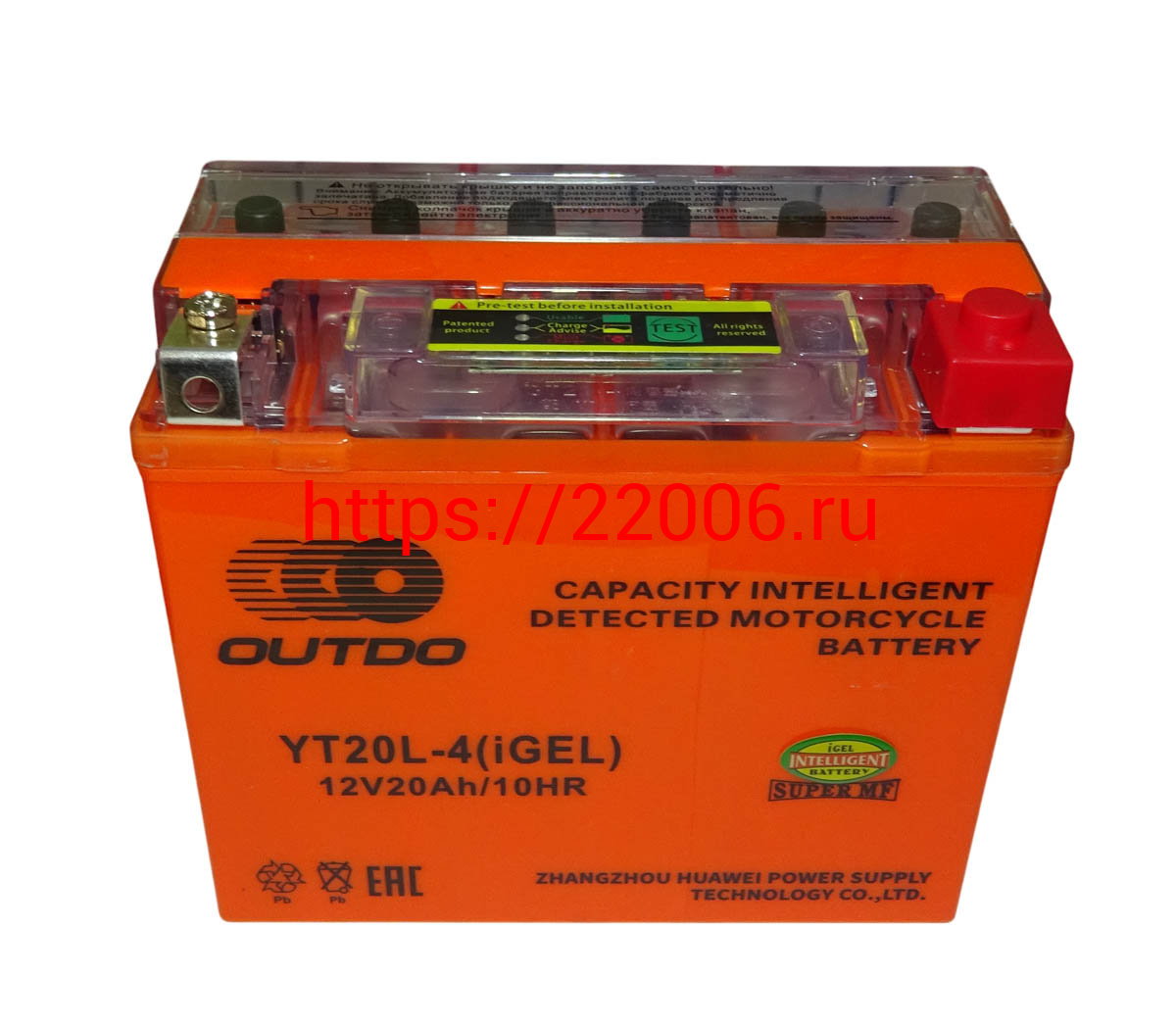 - Аккумулятор 12В 20 А/ч YT20L-4 iGEL, OUTDO (177х88х154) обратная пол. в Челябинске недорого