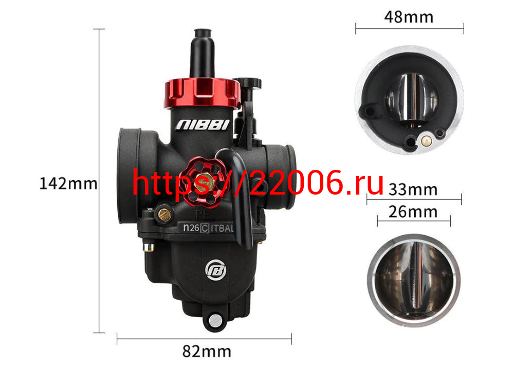 - Карбюратор NIBBI Racing PE26 (YJ), реком.двиг. 140-160 см3 (вход/выход 26 и 48 мм) в Челябинске недорого