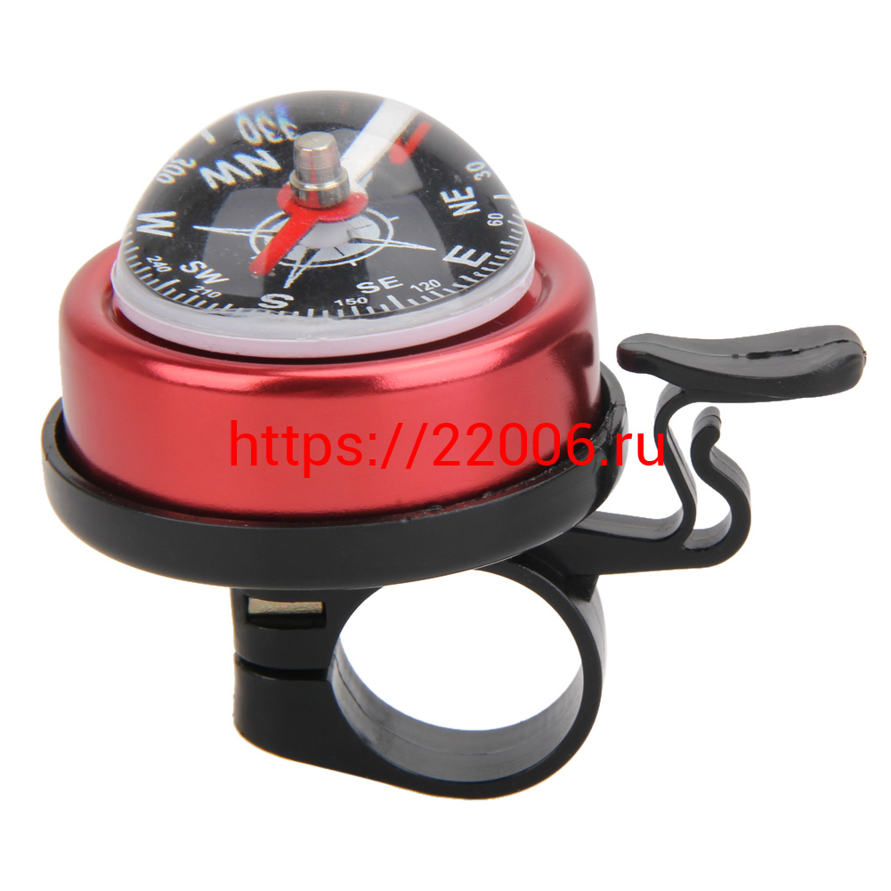 - Звонок велосипедный малый с компасом, сталь/пластик, синий/красный в Челябинске недорого
