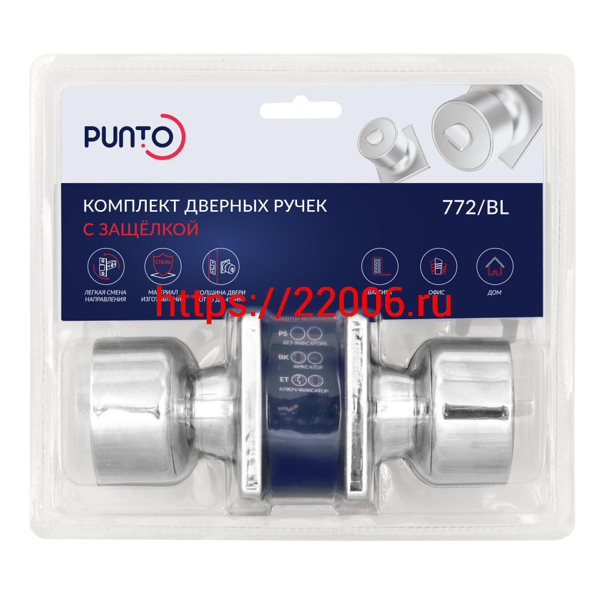 - Ручка Punto (Пунто) защелка DK772/BL CP-PS (без фик.)хром в Челябинске недорого