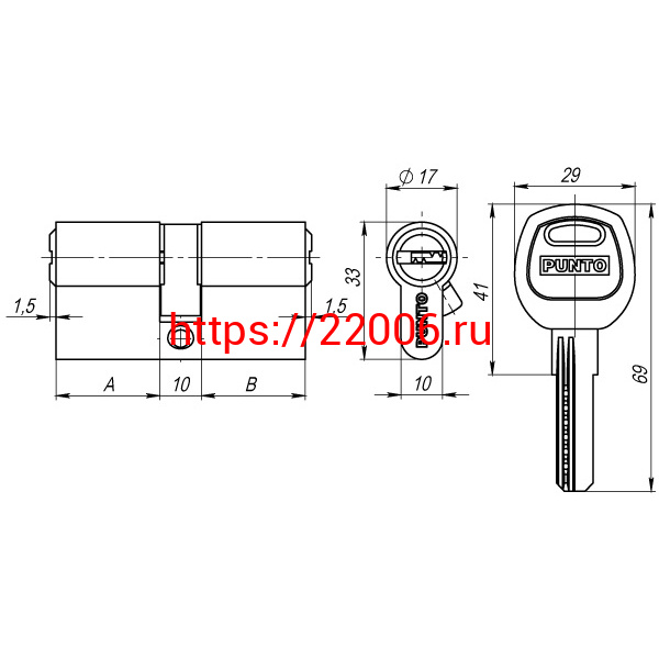 - Цилиндровый Punto (Пунто) механизм (A200/80) A2000Key80(35+10+35) SN никель в Челябинске недорого