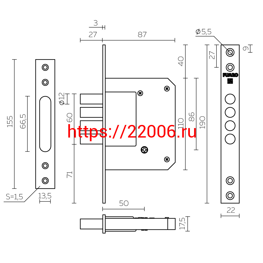- Замок Fuaro (Фуаро) врезной крестообразный X200-4MF/PB (200-4MF/PB) латунь 5key в Челябинске недорого