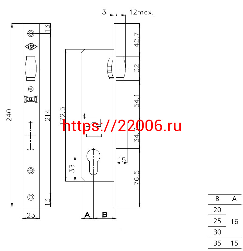 - Корпус Kale kilit (Кале килит) узкопрофильного замка с роликовой защёлкой 155 (30 mm) w/b (никель) в Челябинске недорого