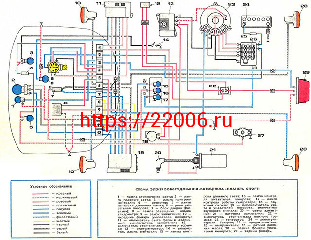 - Схема электрооборудования мотоцикла "ИЖ-Планета Спорт" (12v) в Челябинске недорого