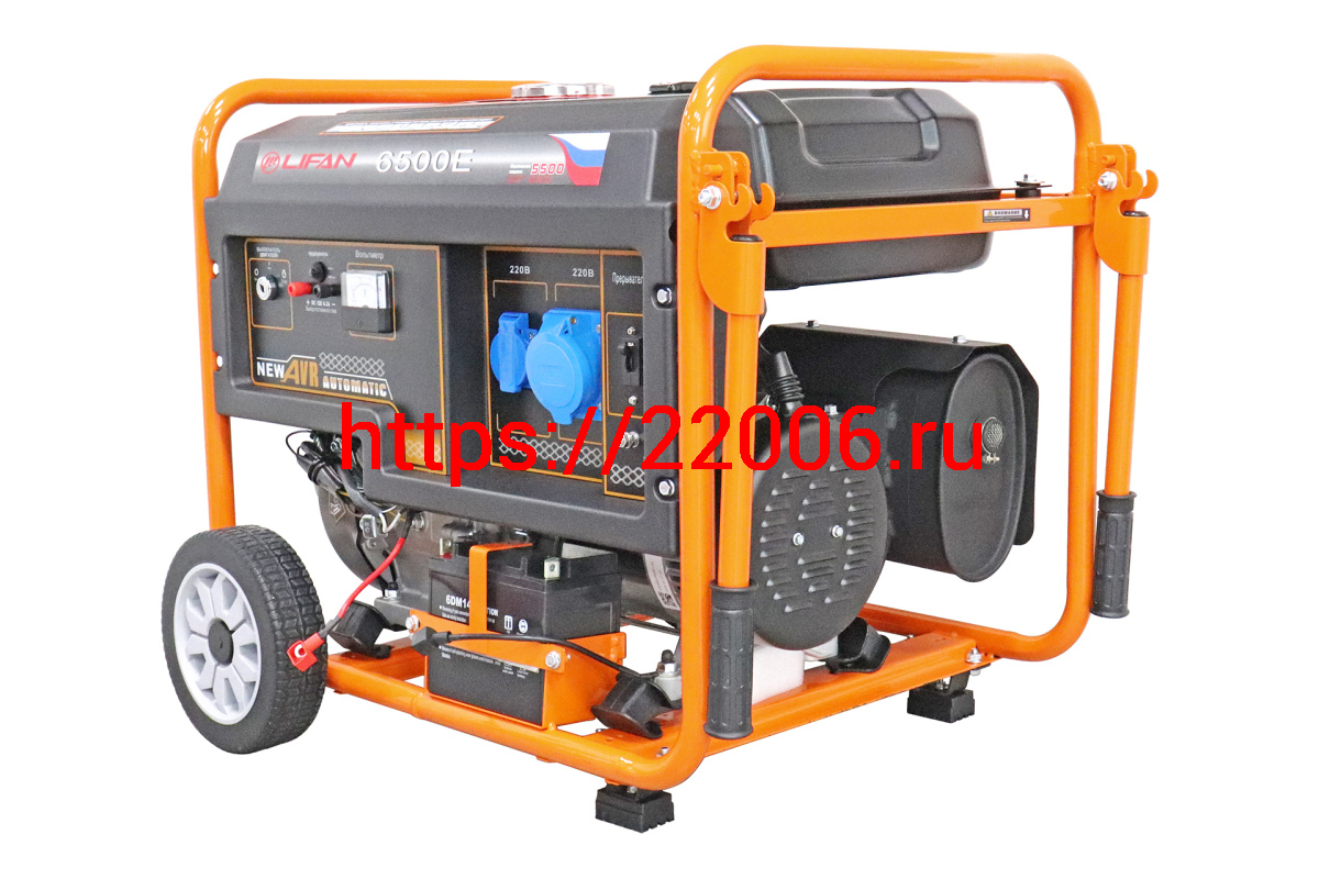 - Генератор бенз. "LIFAN" 5GF-4(LF6500Е)(ном.5кВт,макc5,5кВт, 4т.,13л.с.188FD,бак 25л.,электростартер, медн.обм.альтернатора, AVR, жк табло, колеса, АКБ в Челябинске недорого
